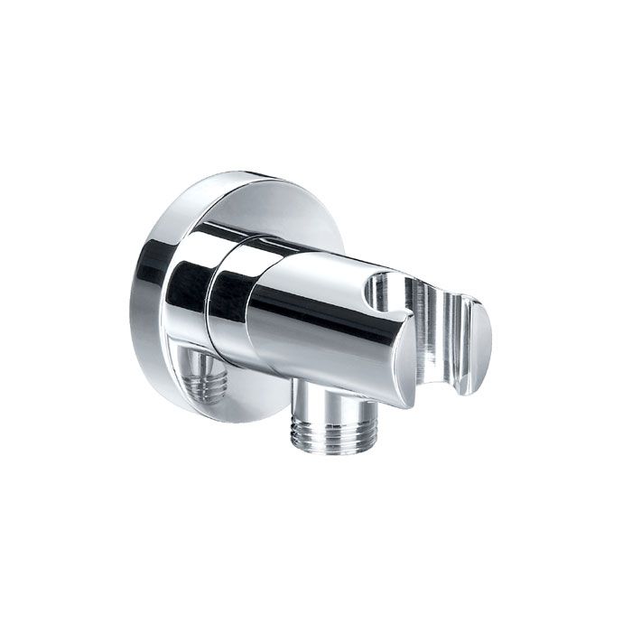 Imex Ceramics (Previously Pura Bathrooms) Round Wall Outlet Elbow With Handset Holder in Chrome (KI120A)