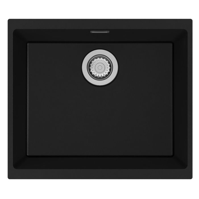 Clearwater Siena 1 Large Bowl Reversible Inset or Undermount Quarsil Granite Sink with Waste in Nero - SIE N500 NE
