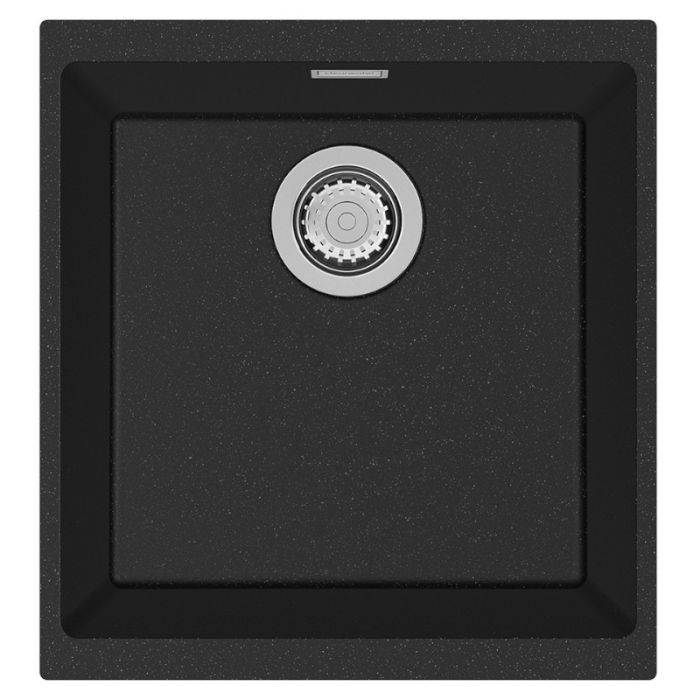 Clearwater Siena 1 Medium Bowl Reversible Inset or Undermount Quarsil Granite Sink with Waste in Onyx - SIE N400 ON