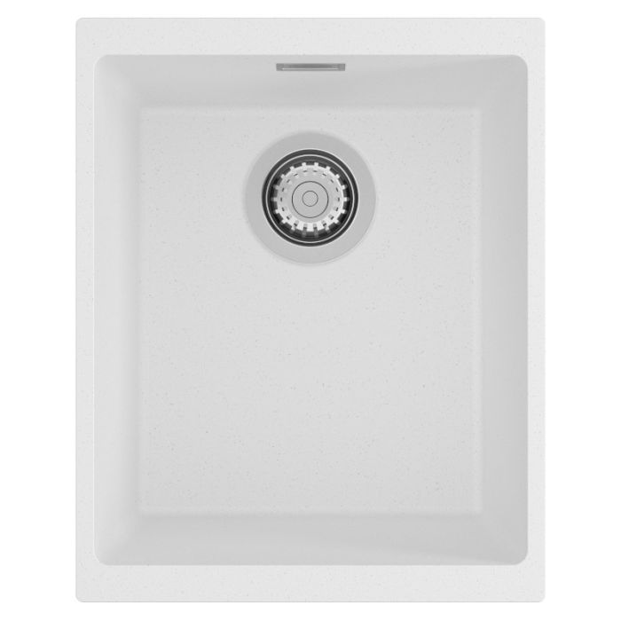 Clearwater Siena 1 Small Bowl Reversible Inset or Undermount Quarsil Granite Sink with Waste in Polar White - SIE N340 PO
