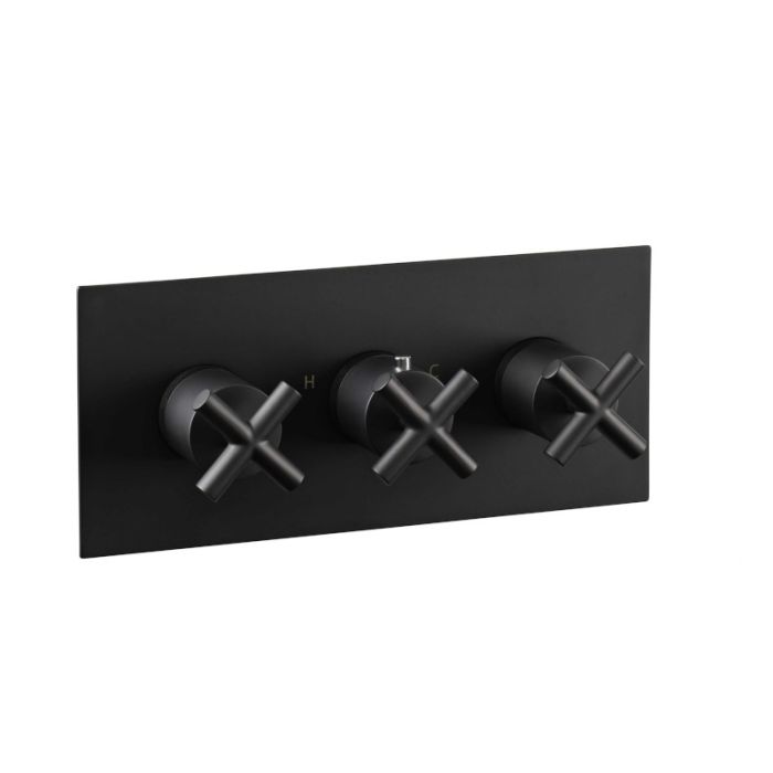 Just Taps Plus - Solex Two Outlet Triple Crosshead Handle Horizontal Thermostatic Shower Valve in Matt Black (6693AMB)