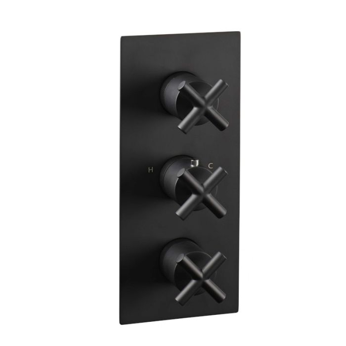 Just Taps Plus - Solex Two Outlet Triple Crosshead Handle Vertical Thermostatic Shower Valve in Matt Black (6690AMB)