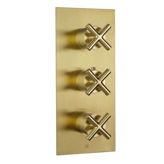Just Taps Plus - Solex Two Outlet Triple Crosshead Handle Vertical Thermostatic Shower Valve in Brushed Brass (6690ABBR)
