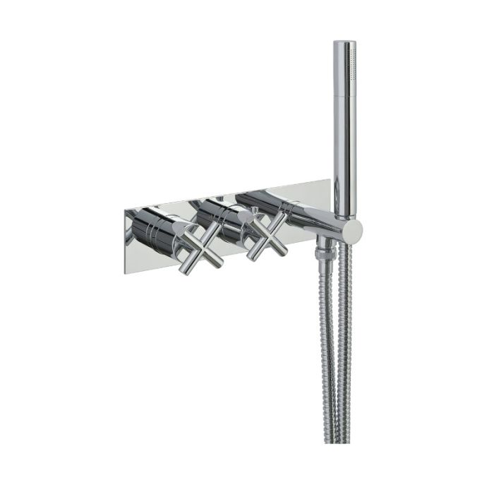 Just Taps Plus - Solex Two Outlet Crosshead Handle Thermostatic Shower Valve with Handset in Chrome (65868)