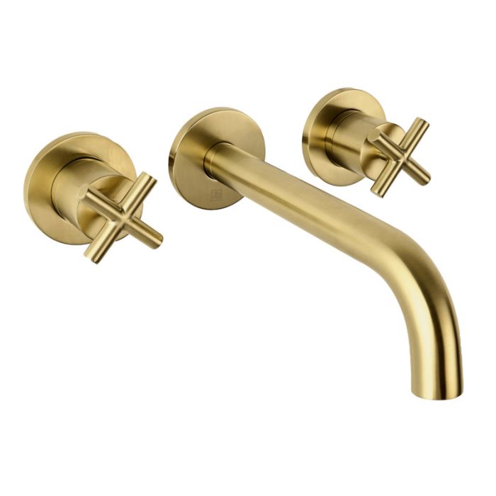 Just Taps Plus - Solex 3 Hole Wall Mounted Crosshead Basin Mixer in Brushed Brass (66089ABBR)