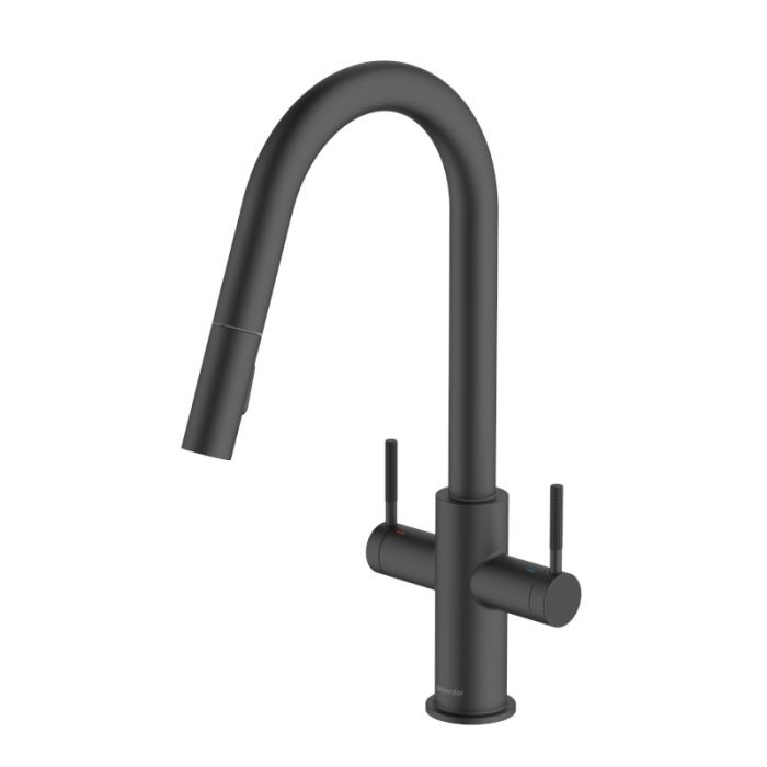 Clearwater Topaz Pull-Out Spray J-Spout Twin Lever Monobloc Kitchen Tap with Swivel Spout in Matt Black (TOP30MB)