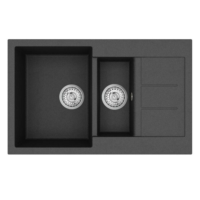 Stylish and versatile, the Vesta Compact 1.5 Bowl and Drainer Jet is perfect for smaller kitchens when worktop space is at a premium. Available in Quarex colours; Blizzard, Fossil, Jet, Nude, Slate and Steel