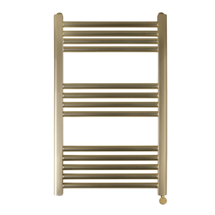 Just Taps Plus VOS 800mm x 500mm Electric Towel Rail with Heating Element in Brushed Brass - VOSELT80BBR