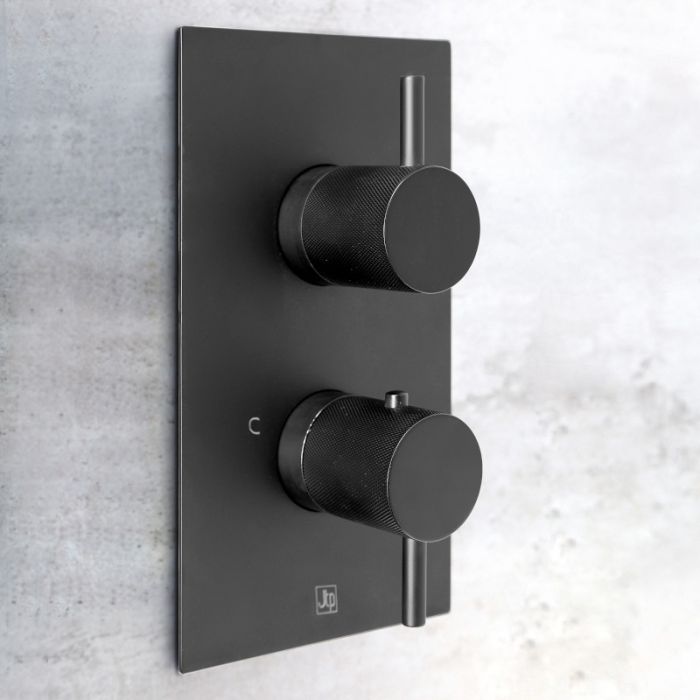 Just Taps Plus - VOS Designer Knurled Handle Single Outlet Thermostatic Shower Valve in Matt Black (DH28651AMB)