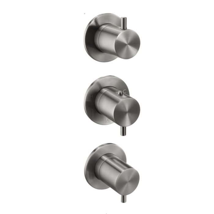 Just Taps Plus - VOS Modular Three Outlet Recessed Three Lever Vertical Thermostatic Shower Valve with Diverter in Brushed Black (27791BBL)