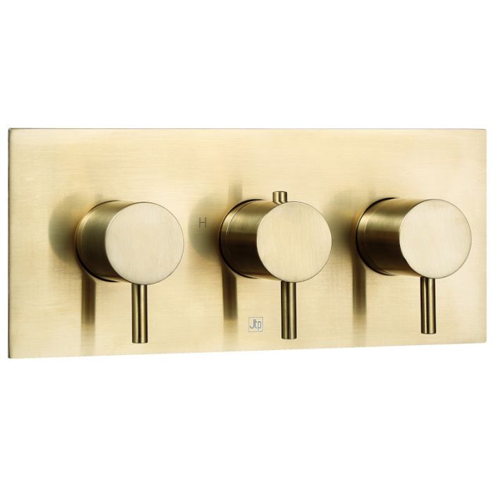 Just Taps Plus - VOS Three Outlet Three Lever (Horizontal) Thermostatic Shower Valve with Diverter in Brushed Brass (23692ABBR)