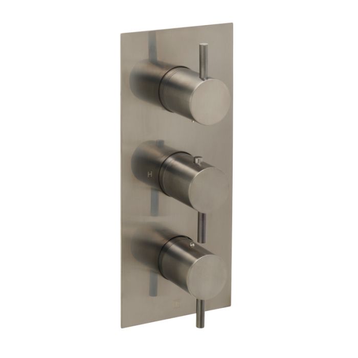 Just Taps Plus - VOS Three Outlet Three Lever (Vertical) Thermostatic Shower Valve with Diverter in Brushed Black (27691ABBL)
