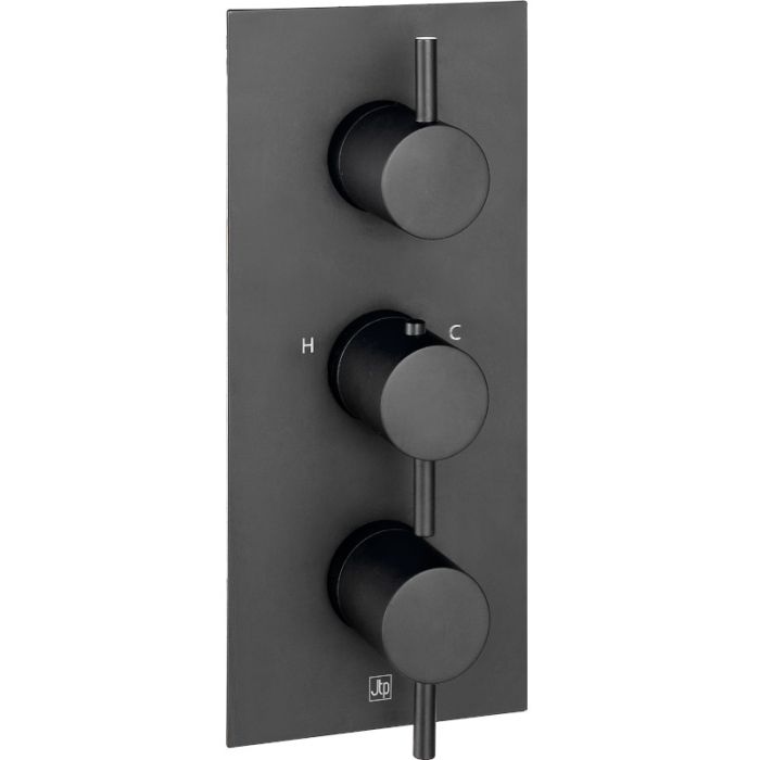 Just Taps Plus - VOS Three Outlet Three Lever (Vertical) Thermostatic Shower Valve with Diverter in Matt Black (28691AMB)