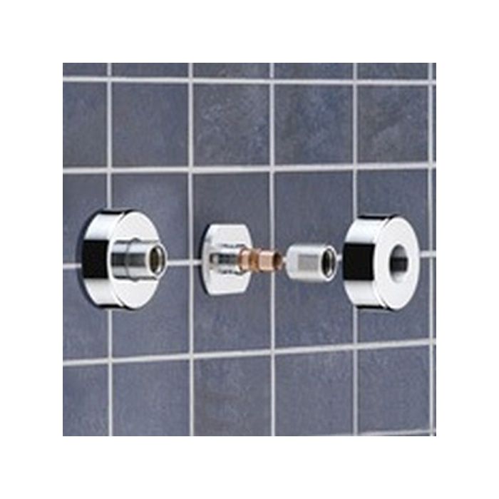 Fast Fix Chrome wall mount fixings are designed to fix a bar shower valve to the wall in the easiest way, all you need to do is have your 15mm copper tube coming through the wall attach the fast fix kit to the wall and the shower valve can then be mounted directly onto the fast fix kit.