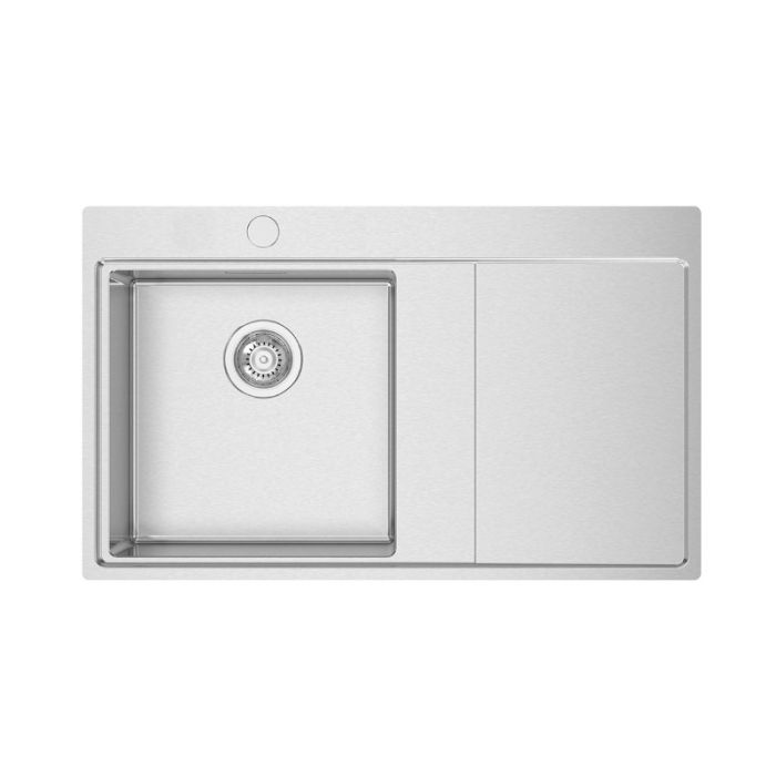Clearwater Xeron 86 Single Bowl Right Hand Drainer Inset Kitchen Sink in Brushed Stainless Steel Finish (MH1F243A2)