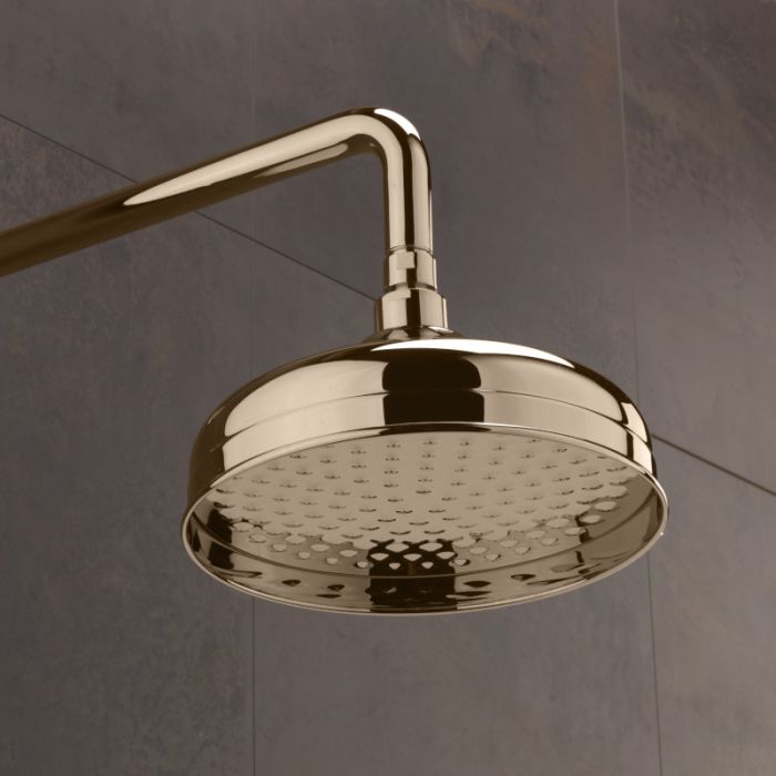 YORK 200mm SHOWER HEAD & ARM GOLD
